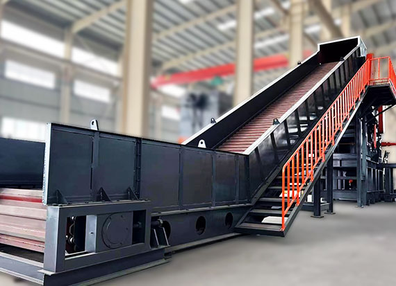 破碎線主機殼體采用特厚鋼板制造,內襯為高錳鑄鋼件,可更換;主機轉子盤安裝于水平軸上,轉子盤圓周分布有銷軸,軸向懸有錘頭;主軸用滾珠軸承支撐,循環油強制潤滑冷卻,并裝有溫度傳感器;進料口裝有液壓輥筒喂料裝置,位置一高一低,同向旋轉,能將大件松散物料壓扁,送入破碎腔內。